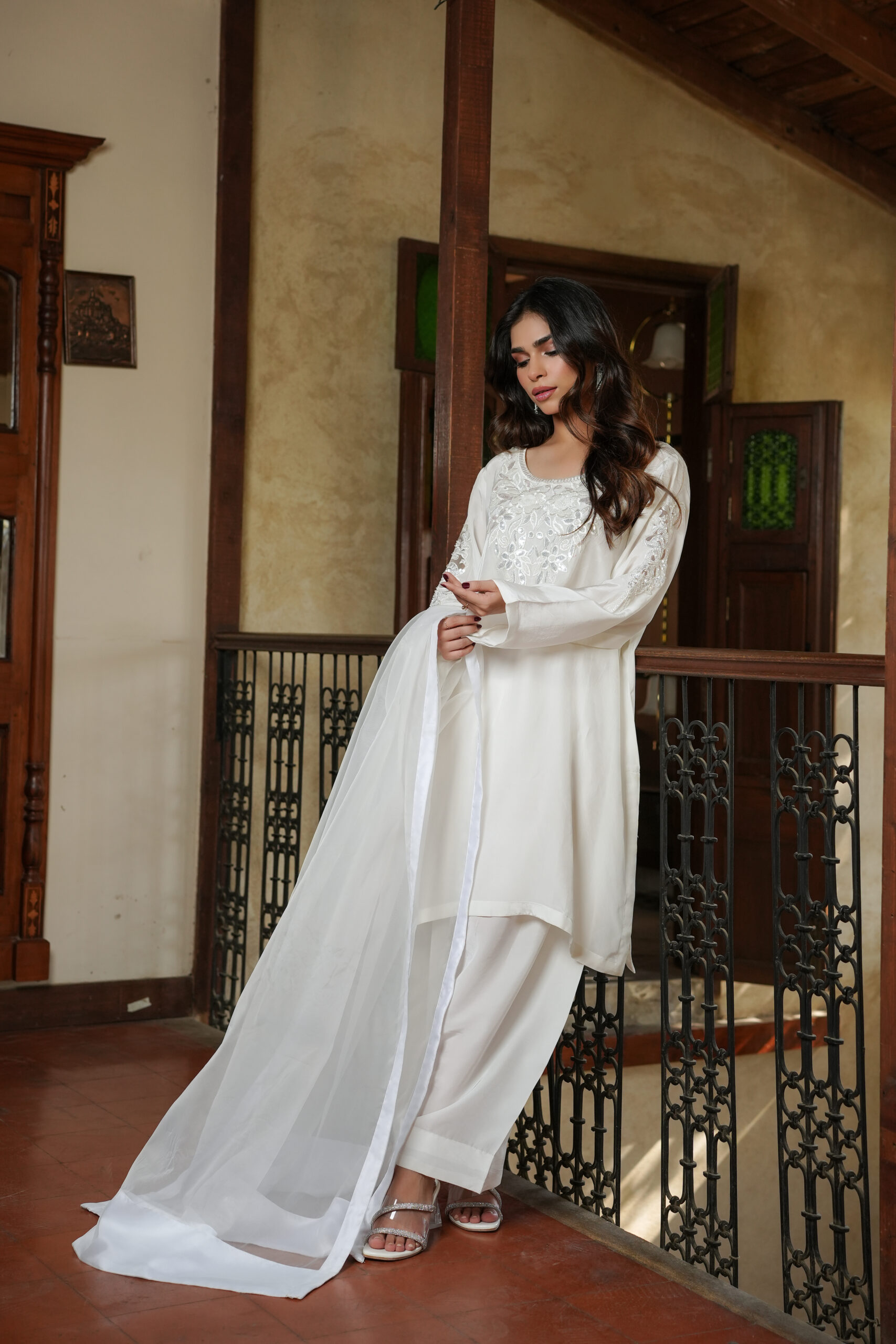 Collection: Premium Silk Shirt – Wide-Leg Trouser – Organza Dupatta