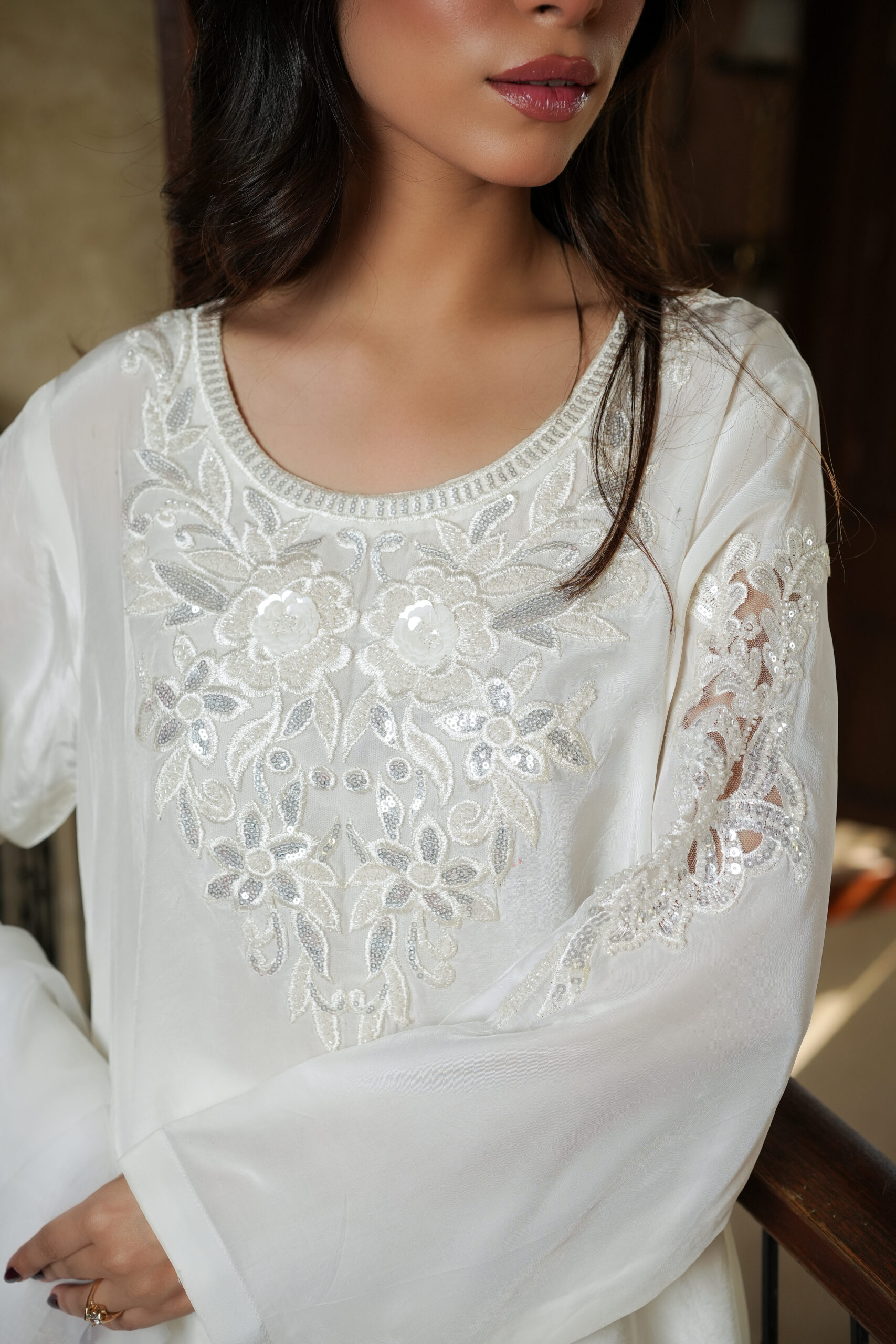 Neckline: Floral Embroidered Neckline