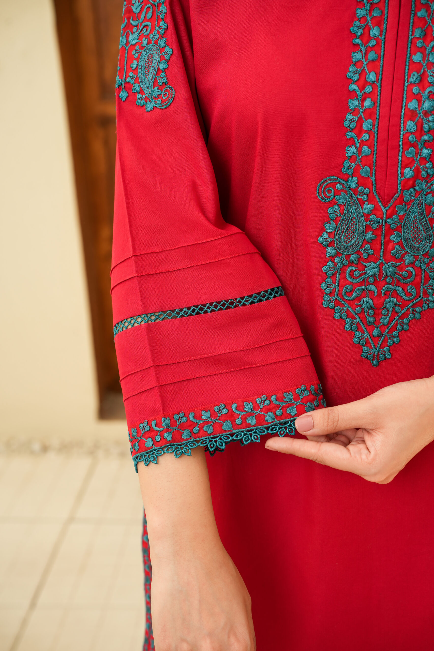 Embellishment: Embroidery on Sleeves and Neckline